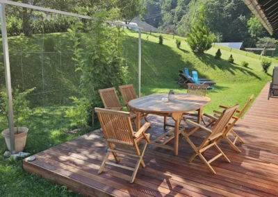 Apartments Perla are brand new apartments that combine modern architecture with the traditional use of wood in construction. Located in the beautiful village of Gorje they provide the perfect starting point for hiking (Vintgar gorge) and biking (beautiful Radovna valley and Pokljuka plateau). Apartments are only 4 km from Bled and are very close to the pearl of the Julian Alps, yet secluded from the hustle and bustle of one of the main tourist attractions in Slovenia. All apartments are fully furbished for your maximum comfort. All apartments have a kitchen and private bathroom/toilet, every room is air conditioned. All apartments have garden area access as well as a chill-out area with hammocks, traditional oak chairs and desk built under a wooden hay rack.
