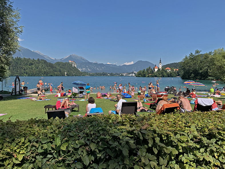Lake Bled is warm enough for swimming from mid June till mid September, the water has a pleasant temperature of 20-24 Celsius. Swimming is allowed at three locations by the lake. The first is Grajsko kopališče under Bled castle. The lido has pools for children, bar, restaurant, life guards, toilets and showers. Entrance fee applies.