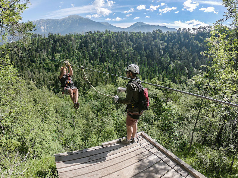 Adventure park is located on Straža hill above Bled. The park is suitable for chidren older than 5. You will be climbing trees, walking between canopies while training your courage and coordination skills.