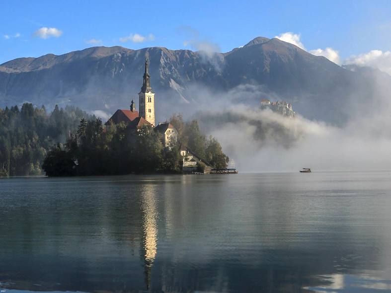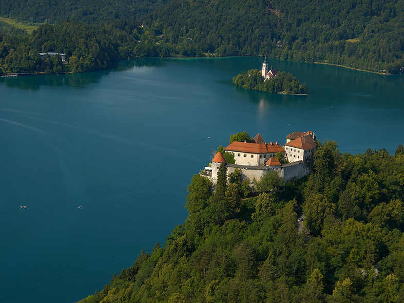 The only real island in Slovenia is the small island in the middle of Lake Bled. It is of glacial origin, on the island you can visit the church (entrance fee), a caffee or a well stocked souvenir shop. Access is possible via Bled’s own wooden boat called pletna. Starting points are at different locations around the lake with no fixed itinerary. The boats leave when enough people gather for the next trip.