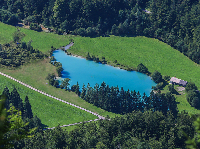 The Radovna river valley begins in the heart of Triglav National Park and offers some breathtaking scenery. You can reach the Radovna river from Apartments Perla if you walk from the apartments to the main road, cross the road and descend for about 5 minutes. When you reach a wooden bridge, cross it and go left. The road is either next to the river or very close to it. You can visit the Radovna river on foot, by bike or by car. The best way to explore it is by bike. About 8km from the valley start by the bridge you will find Kreda lake, a small lake only 50m in diamater located in the fields of the Radovna river valley. You can swim in the lake or just relax in the fields next to it. If you continue up the road from Kreda lake in about 5km you will reach a traditional restaurant called Psnak, offering a variety of traditional Slovene dishes as well as some home produce such as diary and meat. The restaurant offers a great view of Krma valley, where the source of the Radovna river is hidden in the mountains.